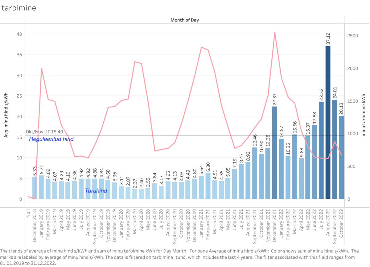 Siin on üks dimensioon veel. Ma eristaksin kaks elektritoote taset: nimetame ühte “toorelekter“, mis toodetakse mingites tootmisüksustes söest, gaasist, päikesest, tuulest või imporditakse; ja teist “tarbeelekter“, mida tarbija läbi jaotusvõrgu kasutada saab. Need ei ole samad tooted: toorelektri eri tehased (ja ka salvestajad) käivad olenevalt tehnoloogiast kas enam-vähem plaanitult või üsna ennustamatult sisse ja välja, seda rohkem kui meil loodame ilmast sõltuvale taastuvelektrile. Tarbeelekter peab aga olemas olema 100% ajast, kokkulepitud võimsuse, pinge ja sagedusega. See ei ole isegi nagu hulgi ja jaemüük, kus muutub vaid kauba pakenduse kogus, vaid pigem nagu jahu ja saia tootmine, kus esimest on vaja et teist toota ja jahu reeglina toorelt tarbida ei kõlba. Sarnaselt jahu tootmisele võib olenevalt allikast nii kvaliteet ning hind väga kõikuv, kuid meie pagar (Elering) peab suutma tagama varustatuse kasutades kombinatsiooni tootmise, salvestuse ja tarbimise juhtimisest, eri tehnilistest ja majanduslikest lisaseadmetest. Tal tuleb tagada kvaliteetne särts alati sel hetkel kui mistahes tarbijal tuleb pähe nuppu klõpsida. See on ülimalt keeruline ülesanne, võibolla isegi pea sama keeruline kui hea saia valmistamine. Kunagi, kui elektrisüsteem oli otsene jaotus põlevkivijaamast tarbijani oli see üksjagu lihtsam, ja sellist eristust ehk polnud vajagi teha; tänapäeval on lugu aga teine. Nüüd hinna juurde tulles: kui erinevate toorelektrite kvaliteet on erinevad, ja ka tarbeelekter kui toode on hoopis erinevate nõuetega, siis kas peavad olema hinnad samad? Täna pole haruldane, et “suvalise” tarnekvaliteediga päikesepaneelist elektri tootja eeldab, oma toodangu eest saab oodata pea sama hinda kui maksab jaetarbija oma valmiselektri eest. See on nagu võtaks viljakasvataja saiakilo hinna ja küsiks samapalju oma kg jahu või isegi vilja eest. Mulle tundub, et peame eristama erinevad numbritest päikese (PV), tuule, hüdrosalvestuse, tuuma ja gaasijaamade toodetava ja tarbijale valmiskujul tarnitava elektri puhul, ja seda nii oma-, turu- kui reguleeritud hindade osas. Selle kõige lihtsustamine ühele numbrile on ikka väga suur lihtsustus.